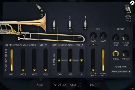 The Virtual Space perfectly replicates a real recording of an ensemble, using convolution reverb. When you record a big band, you usually place a pair of microphones in front of the musicians and they naturally take position in the stereo field depending on where they are in the room.