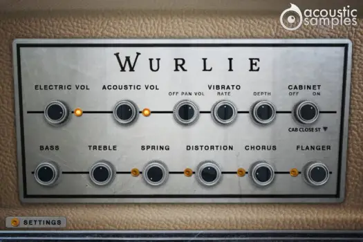 Wurlitzers© are often played with FX, we added a 2 band EQ, a Spring reverb, a tube distortion, a chorus and a flanger, and there is also a list of known amp simulations to choose from.
