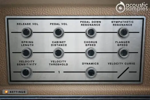 The advenced panel lets you control a few things like the pedal noise or the release volume, and also a few more parameters of the FX.