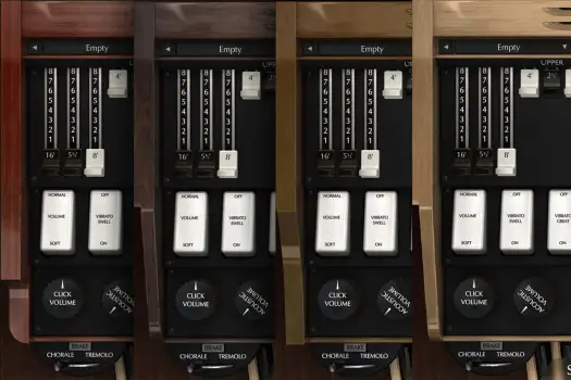 - New “TONE CONTROL” knob that simulates the tone control potentiometer present inside the real Hammonds that allow to control the overall brightness of the organ, it’s not a simple filter, it’s a voicing element that acts on the 91 tonewheels before the whole drawbar system.
