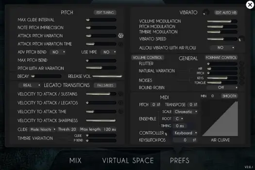 There are an endless number of ways to play a woodwind instrument, and we had to make a careful choice on the default settings based on our interaction with world-class players, but many of the options can be customized to your taste.