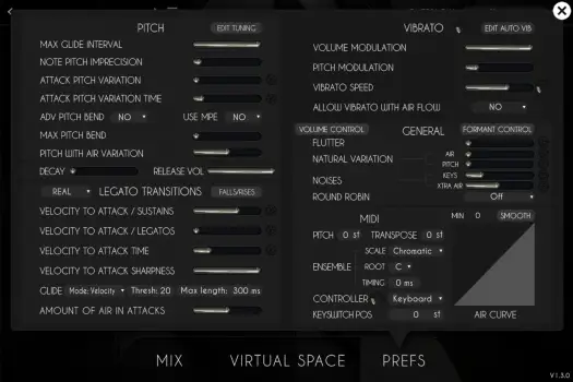There are an endless number of ways to play a woodwind instrument, and we had to make a careful choice on the default settings based on our interaction with world-class players, but many of the options can be customized to your taste.