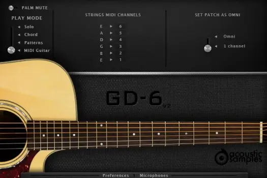 The GD-6 acoustic guitar library comes with 2 microphones perspectives, a stereo pair and the DI output and you can adjust the volume of each of them.