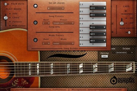 There are 4 basic modes; the Solo mode (usually for playing melodies), the Chord mode which helps make strums or picking very easy, the Patterns mode which does all of the strumming or picking for you and the MIDI mode that allows you to use your preferred midi guitar controller. These modes are selected using key switches (G5-C6).